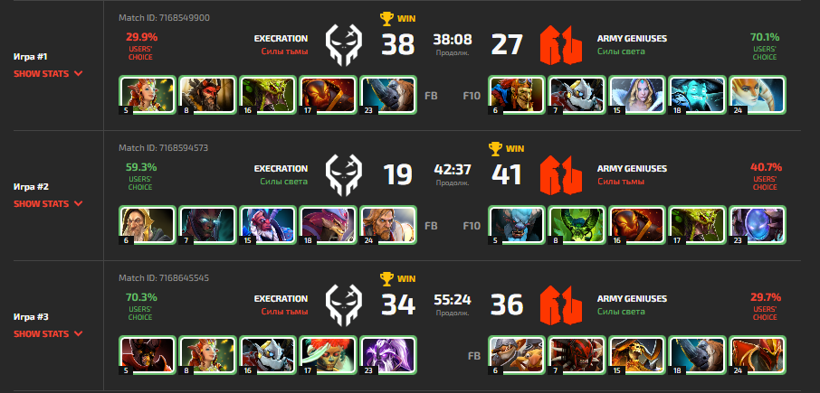 Начало первой карты выдалось равным. Так продолжалось до первого Рошана. На 21-ой минуте Execration смогли забрать эгиду, благодаря чему им удалось снести все внешние вышки, а после удачной драки на хайграунде противника упала и сторона. Следующий Аегис, также, достался Execration и уже с ним они сломали остальные стороны и закончили игру в свою пользу.