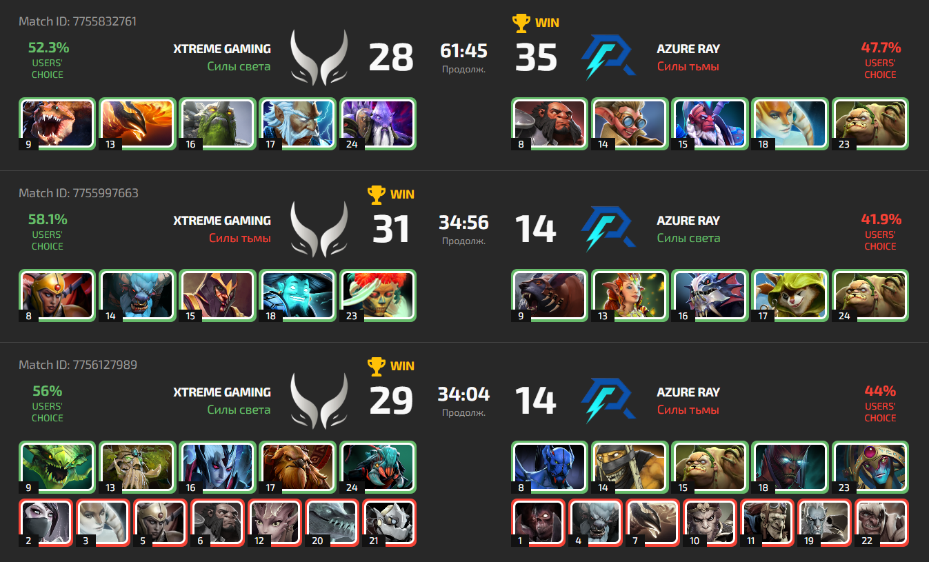 Xtreme Gaming выбили Azure Ray с DreamLeague Season 23 и из гонки за слот на Riyadh Masters 2024. Team Spirit гарантировали себе прямое приглашение на главный турнир года от ESL. Матч закончился со счетом 2-1.
