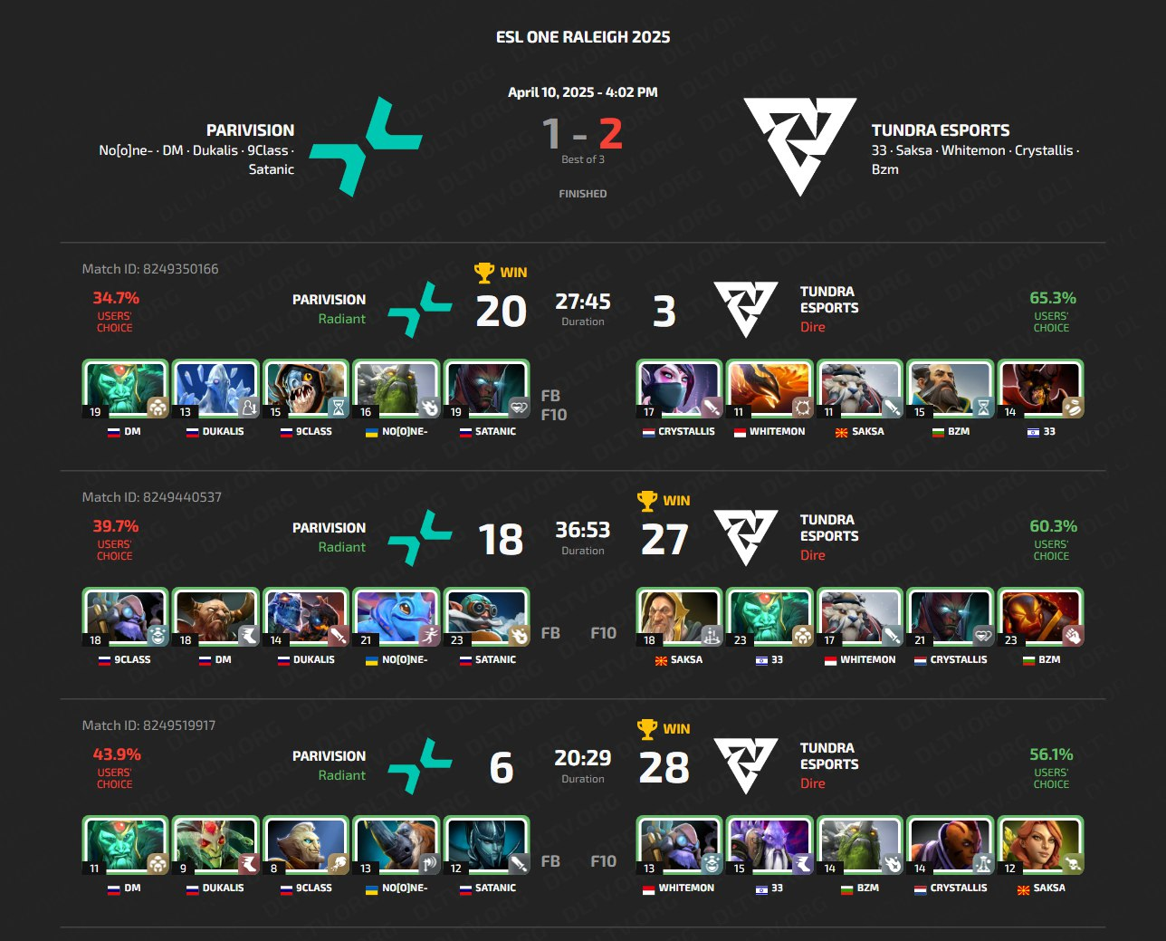 Tundra Esports обыграли PARIVISION в первом раунде верхней сетки ESL One Raleigh 2025.